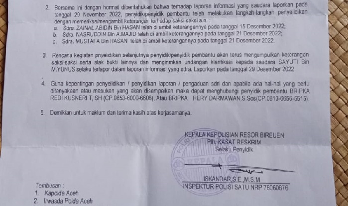 HABADAILY.COM—Pengusutan dugaan tindak pidana penipuan dan penggelapan uang pembangunan rumah KPR Bersubsidi yang ditangani Polres Bireuen hampir mamasuki tahap gelar perkara. Sejauh ini penyidik masih mengumpulkan bukti-bukti dan pemeriksaan sejumlah saksi.