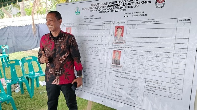 HABADAILY.COM—Mahdi M Saleh alias Pang Cobra unggul dalam perolehan suara pada Pemilihan Keuchik Gampong Samuti Makmur, Kecamatan Gandapura, Kabupaten Bireuen, Kamis (10/8/2023).