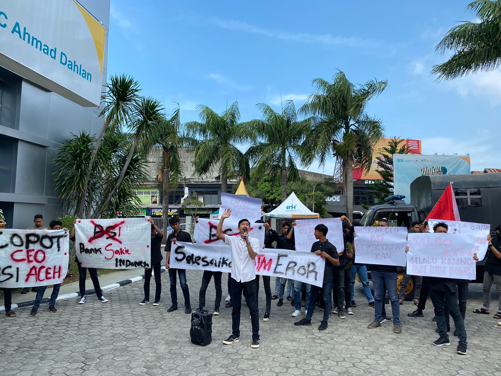 Dalam aksinya, para mahasiswa membawa spanduk bertuliskan "Selesaikan ATM Error, Copot CEO BSI Aceh". Mereka juga membakar ban sebagai bentuk protes.