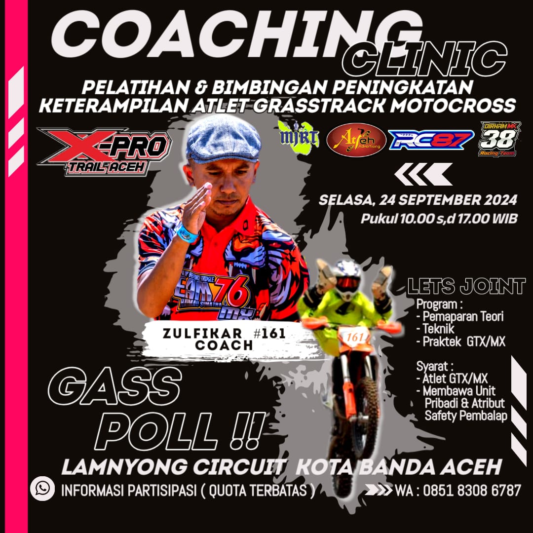 Ada Coaching Clinic Garstrack dan Motocross Gratis di Banda Aceh, Zulfikar #161 sebagai Pemateri