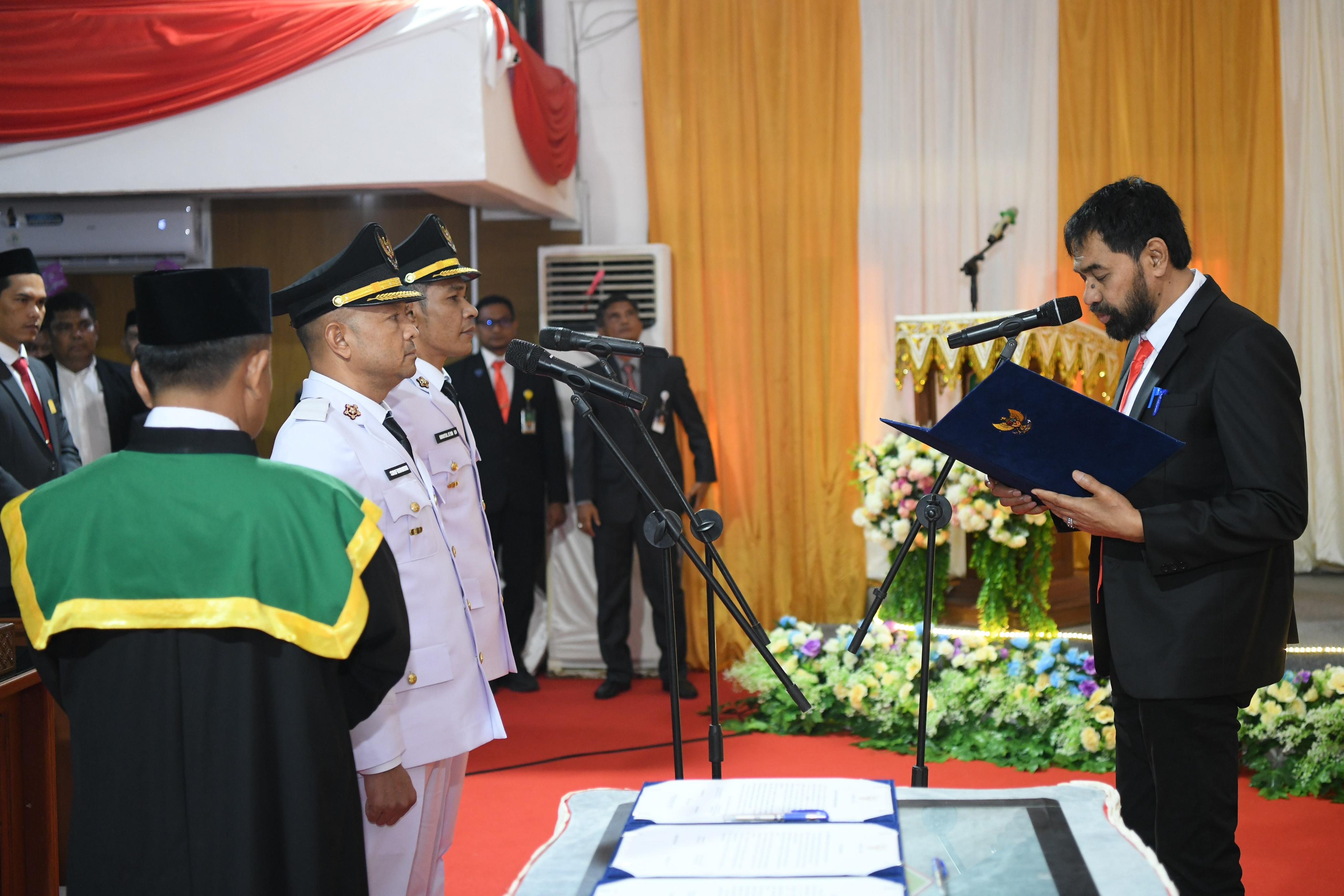 2. Pasangan Safwandi dan Muslem sebagai Bupati dan Wakil Bupati Aceh Jaya untuk masa jabatan 2025-2030 dalam upacara yang berlangsung dalam rapat paripurna DPRK setempat, Rabu, 19 Februari 2025. Dalam sambutannya, Gubernur menegaskan bahwa amanah yang diberikan oleh rakyat harus dijalankan dengan penuh tanggung jawab serta kerja nyata demi kepentingan masyarakat.