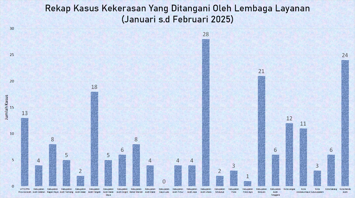 HABADAILY.COM - Data terbaru mengenai kasus kekerasan terhadap perempuan di Aceh menunjukkan tren yang mengkhawatirkan. Berdasarkan catatan dari Januari hingga Februari 2025, Kota Banda Aceh menduduki posisi teratas dengan jumlah kekerasan mencapai 17 kasus.