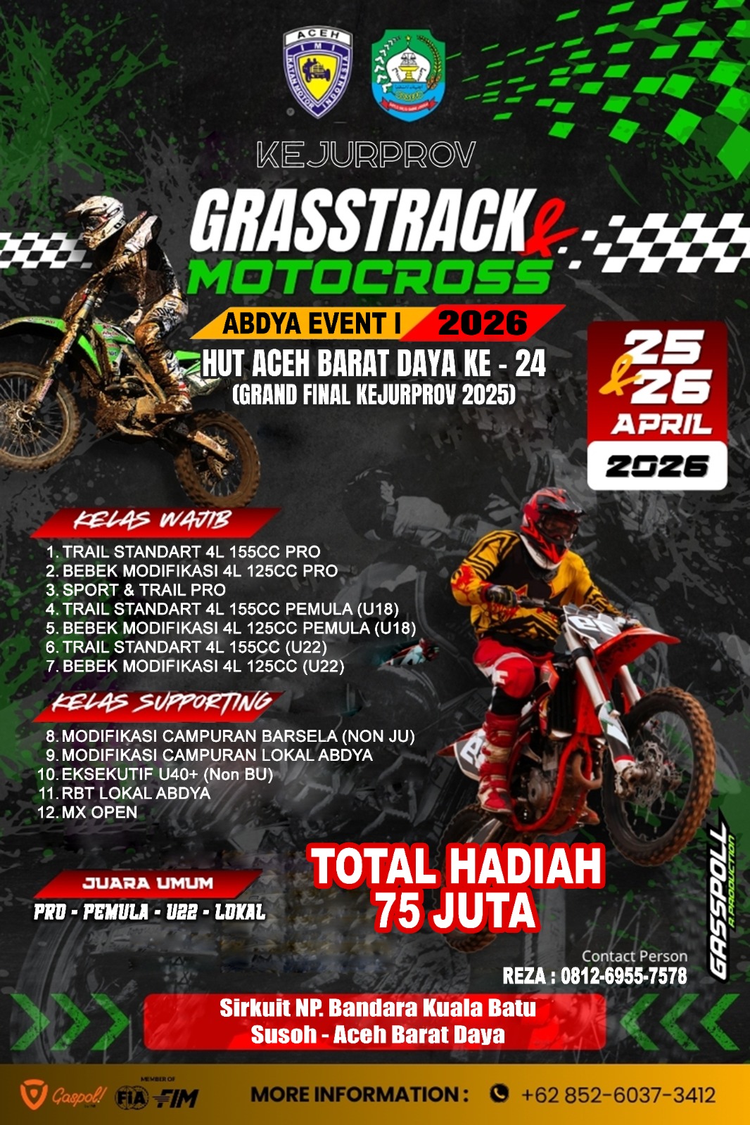 Dengan persiapan yang matang dan dukungan lintas sektor, Kejurprov Grasstrack & Motocross 2026 diprediksi akan menjadi salah satu magnet hiburan terbesar bagi masyarakat Abdya.