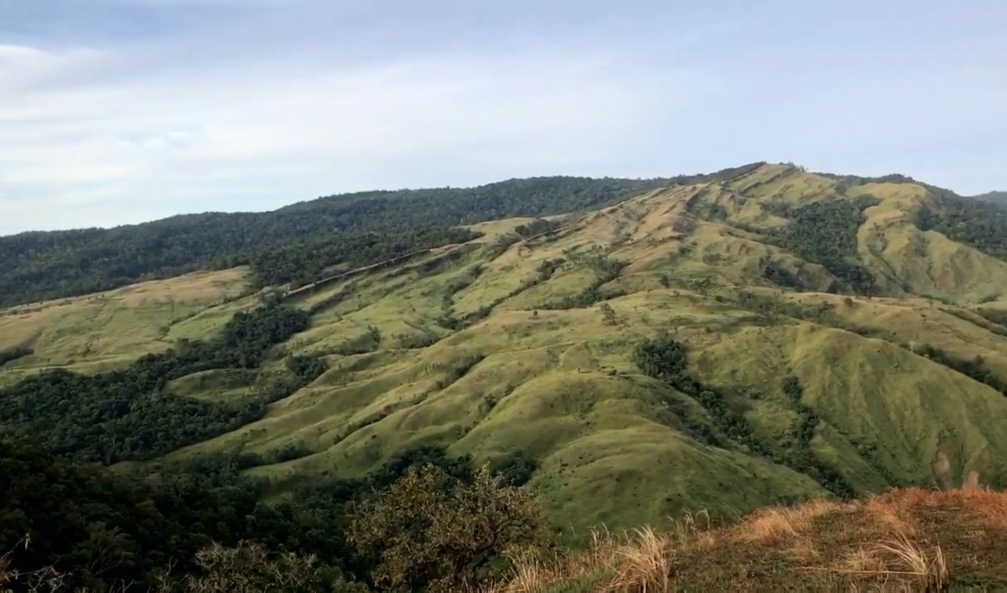 Ketika angin berembus, rerumputan itu bergoyang serentak menciptakan pemandangan yang terasa begitu hidup. Dari atas bukit, pandangan terbuka lebar: lekukan perbukitan, kabut tipis yang menggantung, serta langit yang terasa begitu dekat, seolah bisa disentuh.